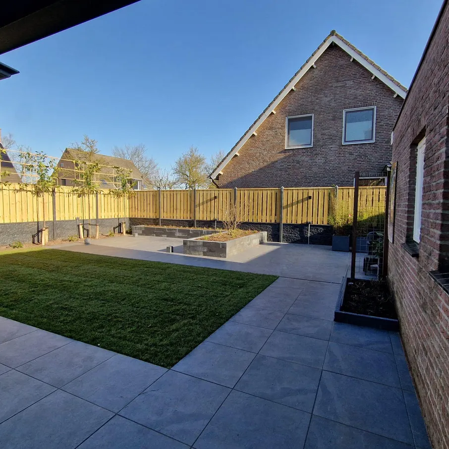 Royale tuin met keramische tegels in Vlierden