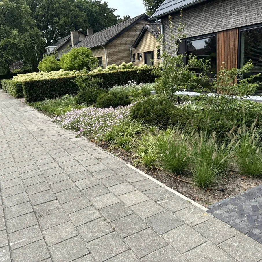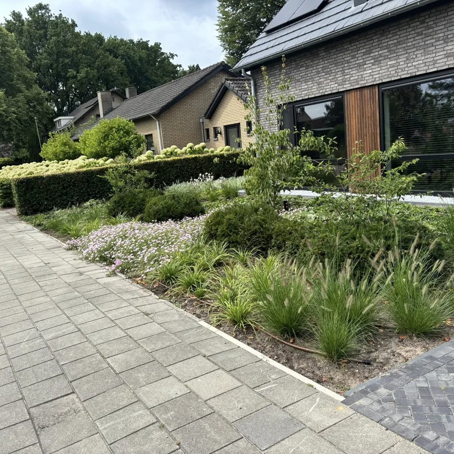 Tuinaanleg rondom nieuwbouwwoning in Vlierden